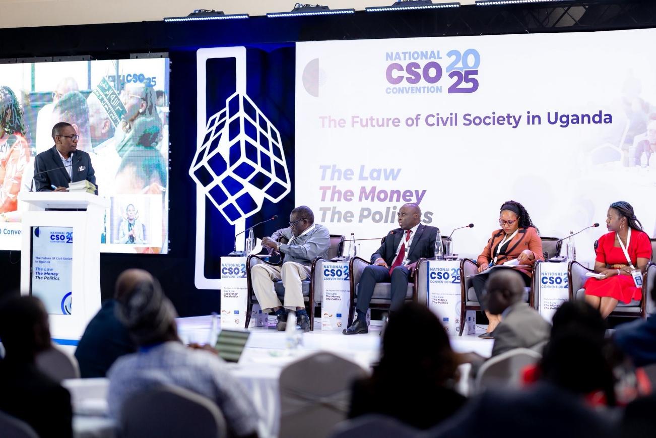 The 2025 National CSO Convention was under the theme “The Future of Civil Society in Uganda: The Law, The Money, The Politics” which positioned it as a stock taking and strategy moment for Uganda’s civil society. This event brought together CSO leaders, government officials, development partners and youth leaders for a two-day dialogue that comprised of  keynote speeches, panel discussions and breakout sessions.  The event started with an opening speech from the Executive Director Uganda National NGO Forum Dr. Moses Isooba whose speech guided on the forum’s framing of the convention’s priorities.